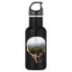 Una pintura digital de la cabeza de un Buck con vistas a colinas cubiertas de árboles y montañas entre sus cuervos.