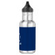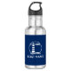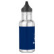 Su nombre personalizado, nombre del barco o texto con un faro náutico en una botella de agua azul de la Marina.