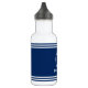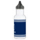 Su nombre personalizado, nombre de barco o texto con un faro náutico Personalizado en una botella de agua de franjas azules y blancas de la marina.