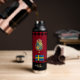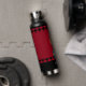 Botella rusa de vacío oscuro aislada de Suecia con bandera sueca, escudo de armas y nombre monogramado en estilo de manta de búfalo rojo y negro de moda - amor a mi país, bebidas calientes de oficina, patriotas nacionales / hincha deportiva