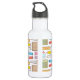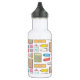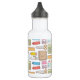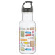 Una botella de agua con doodles bonitos de material escolar que incluyen calculadora, lápiz, lápices de colores, portátil, tijeras, borrador, pegamento, etc. ¡Genial para los niños en la escuela!
