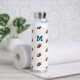 La parte frontal del diseño presenta un fondo blanco para un patrón de balones de fútbol que se muestran por todas partes. La imagen de un goalpost con la inicial que se suministra en el centro se muestra en una huella azul oceánica en el centro, delante y detrás.