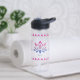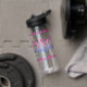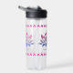 Esta botella de agua floral, práctica y de bonito, tiene tres flores de loto de color rosa azul con un texto editable para promover una pausa meditativa tranquila. Los tres elementos de texto para editarlos y personalizares son: "GRACIAS", "FELIZ" y "ALEGRÍA". Alrededor de la parte superior hay un patrón sencillo que hace eco del pétalo rosa brillante de la flor de loto. Esto se repite en el fondo.