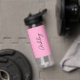 Botella de agua rosa elegante con opción de añadir nombre con hermoso texto de caligrafía. Más productos con este diseño están en la colección de abajo.