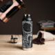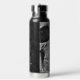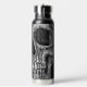 La textura gótica macabra de color negro y blanco grunge impresa en la mitad de la cabeza del cráneo. Asombroso, malvado, espeluznante y siniestro acero inoxidable botella de 25 onzas de agua. Tipografía personalizada. Bebidas de moda. Diseño único, moderno y aterrador de Halloween. Derechos de imagen de Marg Seregelyi Photography.