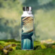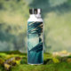Botella De Agua Tiburón en el mar azul profundo y la luz del sol