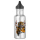 Tigre rugiendo en lenguas de llama. Gran gato salvaje enojado en salto