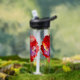 Hibiscus tropical rojo, colibrí, botella de agua de mariposa. Se puede cambiar el nombre del frasco. Gracias al Hungryjpeg por algunos de los elementos del diseño.