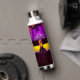 ¿Te gustan los colores morado y amarillo? Esta botella de agua tiene una imagen impresa de un cuadro acrílico de colores que se combinan para dar un efecto líquido. Puedes personalizar esta botella con tu propio nombre.