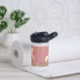 Un unicornio dorado brillante donde se puede personalizar sobre un fondo de color rosa coral con un fondo purpurinoso dorado y plateado, con un borde extra mágico. Vibes míticas caprichosas.