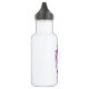 Botella de agua personalizada con un caprichoso dibujo de un unicornio rosa fresco y funky que tiene una forma y un cuento morado. Esta hermosa criatura lleva gafas de sol en forma de corazón y está decorada con pequeñas estrellas y un corazón.