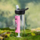Botella de agua de águilas personalizados en rosa = ¡Puede cambiar el color de fondo! Alegre el estilo de las Águilas con las rayas de cebra en GO, Águilas vuelan alto!