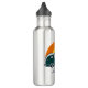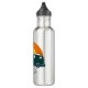 Botella de agua de los amantes del campamento. Colores retro naranja, camping retro amarillo y azul RV.