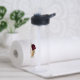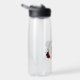Hermosa botella de agua con flores granate y beige dorado con hojas verdes .