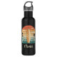 Esta botella de agua personalizada incluye una tabla de surf fresca, olas onduladas de estilo retro y siluetas minimalistas de palmeras. Este diseño combina audaces tonos vintage para una estética de surf nostálgica.