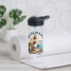 Botella de Agua Vida de Playa. Ilustración de una escena playera con faro, tablas de surf, palmeras y delfín.