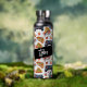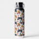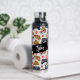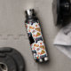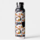 Botella de agua personalizada con porciones de pizza y controladores de videojuegos.