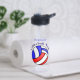 Voleibol Mamá texto curvado alrededor de un voleibol rojo, blanco y azul. El nombre de mamá está en medio a juego con el azul real. Buen regalo para el Día de la Madre.