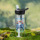 Esta es una botella de agua divertida para un niño al que le gusta jugar, con un controlador de juegos con material escolar detrás. Esta botella de agua es perfecta para que su hijo la lleve a la escuela y puede ser personalizada con su nombre y grado.