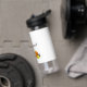 Mooie waterfles met een sportfoto.
