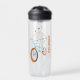 It's the perfect water bottle to use while riding your BMX bike. That's because this water bottle features my hand drawn comic book style illustration of a werewolf skeleton riding a BMX bike. The ivory, aqua blue and orange graphic is accompanied by a name (or any other custom text) running vertically alongside it in coordinating orange letters.