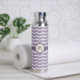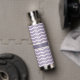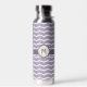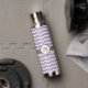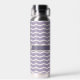 Disfruta de un divertido patrón de zigzag con una bonito floreciente a medida que el zigzag beige se mueve hacia arriba y abajo hasta puntos en forma inspirados en pétalos de loto. Este zigzag florecido se encuentra sobre un agradable fondo lilaco para un contraste relajante. Personalizar el monograma con su inicial para crear una botella de agua que sea única para su uso.