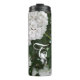 Inicial monograma en letra cursiva blanca. Hermosas flores blancas de Laurel de Montaña y hojas verdes. Fotografía original de TamiraZDesigns.