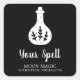 Estas etiquetas de brujería tienen una botella de poción blanca sobre negro.