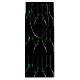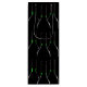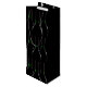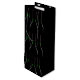 Una silueta de tres botellas negras de vino con etiquetas verdes que brillan en la oscuridad.