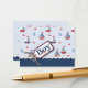 Colores náuticos en barcos de vela clásicos rojos, blancos y azules con anclas y cangrejos y una etiqueta de novedad de estilo chico 3D con twine.