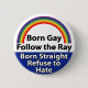 EL BOTÓN DEL ORGULLO GAY DISEÑADO POR DEVIN MICHAEL QUE CONTIENE COLORES DEL ORGULLO, Y EL GAY LLEVADO SIGUEN LA BASURA RECTA LLEVADA RAYO PARA ODIAR FRASE.