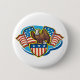 Muestra tu patriotismo con este águila majestuosa. El diseño es de un águila con banderas americanas de fondo.