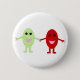 Un botón blanco redondo con un lindo personalizado de una sonriente uva roja sosteniéndose las manos con una sonriente uva verde, ambas uvas tienen brillantes ojos negros y bocas rosadas.