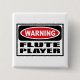 Botón amonestador del JUGADOR de FLAUTA que usted puede modificar para requisitos particulares en www.WarningSignShirts.com y que ofrece una señal de peligro y a un JUGADOR de FLAUTA rojos y negros en letras negras intrépidas de advertir el mundo. Usted puede también modificar su propio botón de la señal para requisitos particulares de peligro con el texto que usted quiere.