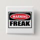 Botón ANORMAL amonestador que usted puede modificar para requisitos particulares en www.WarningSignShirts.com y que ofrece una señal y un MONSTRUO rojos y negros de peligro en letras negras intrépidas de advertir el mundo. Usted puede también modificar su propio botón de la señal para requisitos particulares de peligro con el texto que usted quiere.