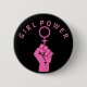Un puño aumentado y el símbolo para la mujer en las rosas fuertes y las palabras "poder del chica" en un fondo negro.