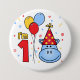 botón Azul Hippo Face Primer Cumpleaños Pinback