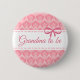 Un botón de ducha de bebé con motivos de color rosa y blanco y Damask que dice "la abuela debe ser".