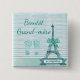 Bientôt Grand-mère La abuela del botón Baby Shower será, con el fondo verde azulado de la Torre Eiffel con pequeñas huellas de bebé y arco
