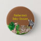 botón de Baby Shower con temas de Safari Jungle Zoo, con un tierno león y una jirafa tendidos y una cebra a un lado. El fondo marrón le da un aspecto rústico. Hace un gran favor o favor de la bolsa clip.