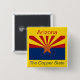 Una auténtica imagen de alta calidad de la bandera de Arizona puesta entre el nombre del estado y el apodo sobre un fondo de color de la bandera clara.