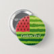 Bandera de la sandía roja y verde con rayas y semillas. Texto personalizado.