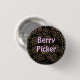 Fotografía de muchas bayas negras impresas en los bordes de botón con texto de personalizable, "Berry PIcker" impreso en el centro.