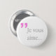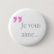 Las citas de amor francesas en tu corazón... Je vous aime on round button. Disponible con otras citas en francés. No olvides la colección de citas de San Valentín.