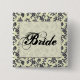 Para que la novia sea, aquí es un botón pasado de moda blanco y negro del damasco con la "novia" en escritura.