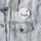 El botón nupcial bonito del fiesta del día de boda tiene el logotipo de la mariposa de la diversión y lema rosados de la novia.