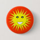 Este luminoso y sonriente botón amarillo del sol te hace sonreír incluso en los días más miserables. Está sobre un fondo rojo cálido y tiene una gran boca de carita blanca y enormes ojos negros con pupilas blancas. Haría un gran botón para los niños.