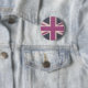 un botón/una insignia con un diseño británico rosado clásico de la bandera