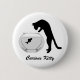 Silhouette de un curioso gato mirando a un tazón de pescado mientras el pez mira hacia atrás.