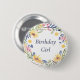Un botón con las palabras "Chica de cumpleaños" rodeadas de flores silvestres de bonito. Un accesorio elegante para las celebraciones especiales y fiestas.